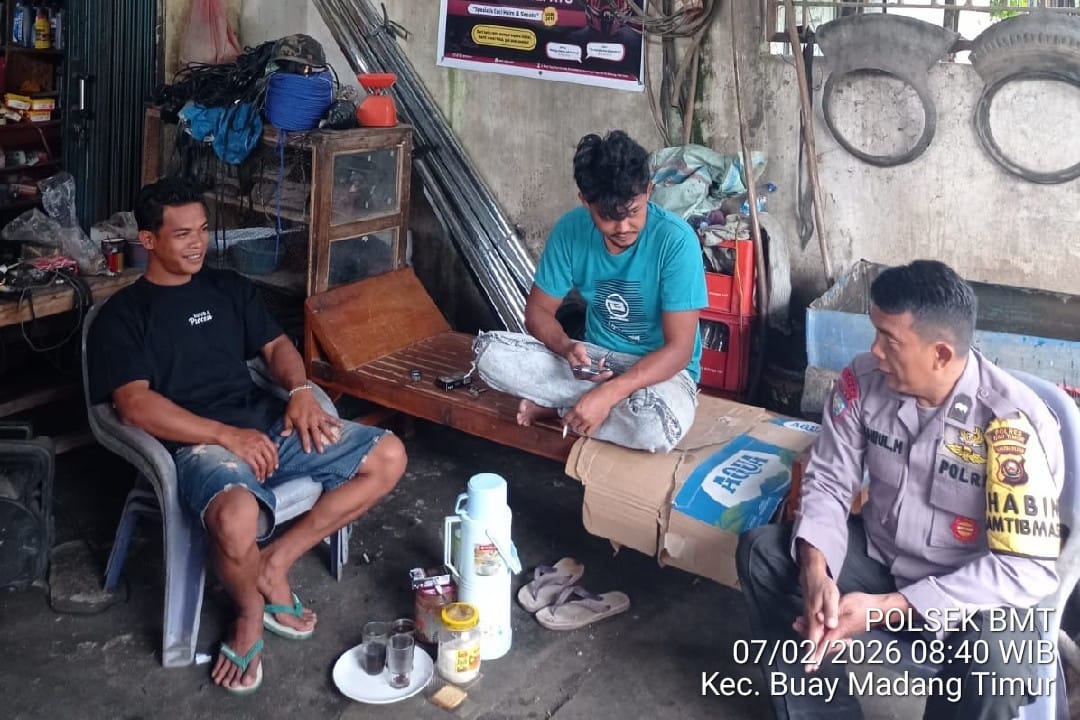 OKU Timur – Personel Polsek Buay Madang Timur melaksanakan kegiatan sambang dan himbauan kamtibmas kepada masyarakat di Desa Kumpul Rejo, Kecamatan Buay Madang Timur, Kabupaten OKU Timur, Sabtu (7/2/2026) pagi.